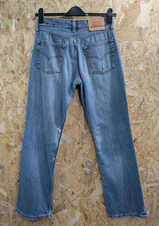 Levis 535 Distressed Bootcut Jeans W30 L30 Vintage Mid Blue Denim Zip Red Tab