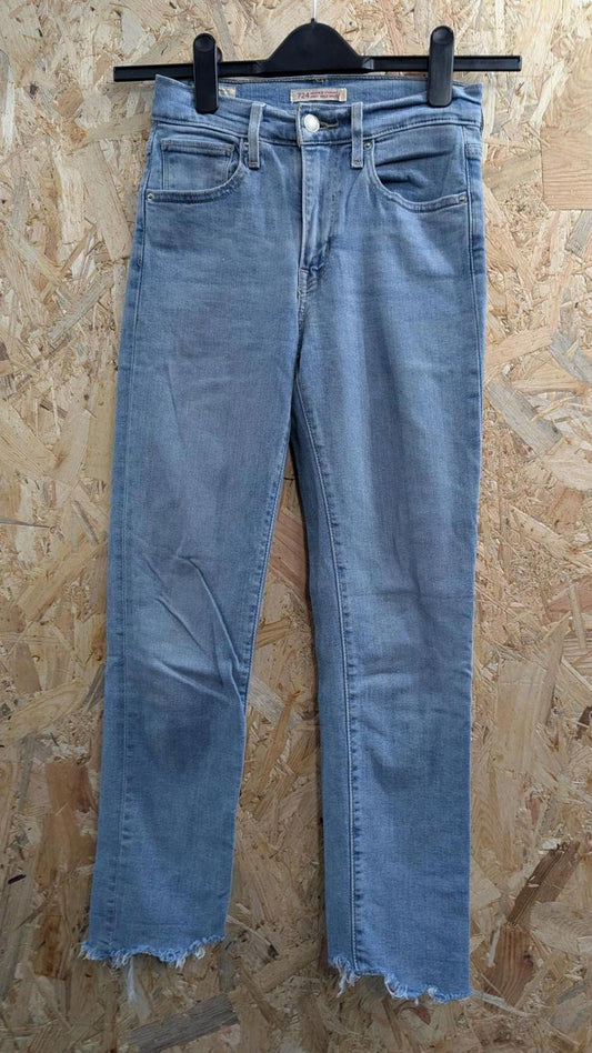 Levis 724 High Rise Straight Jeans W24 L26 Women Raw Premium Big E Stretch Denim