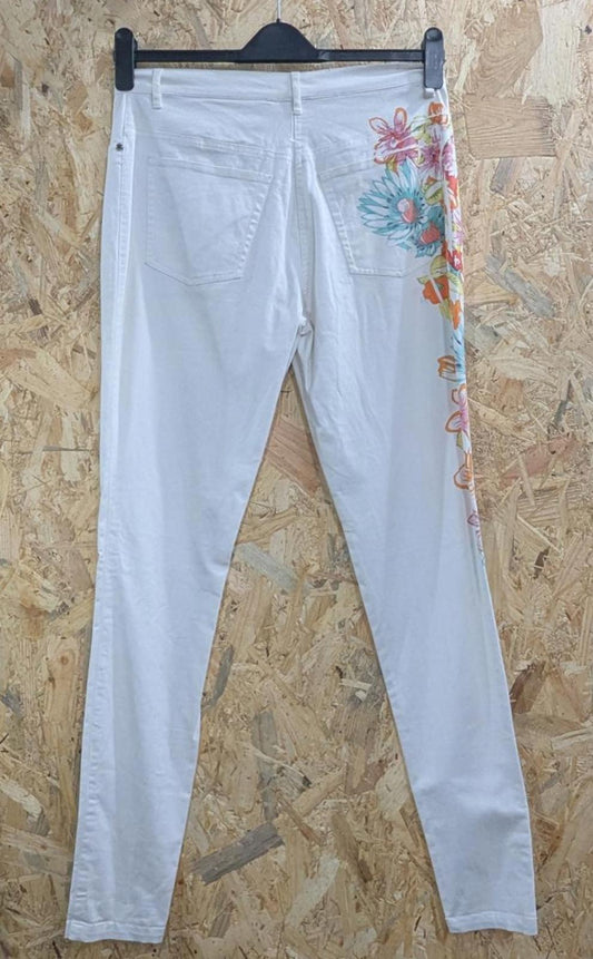 Y2K Burberry White Jeans W30 L34 Women Slim Zip Fly Stretch Floral Print Vintage