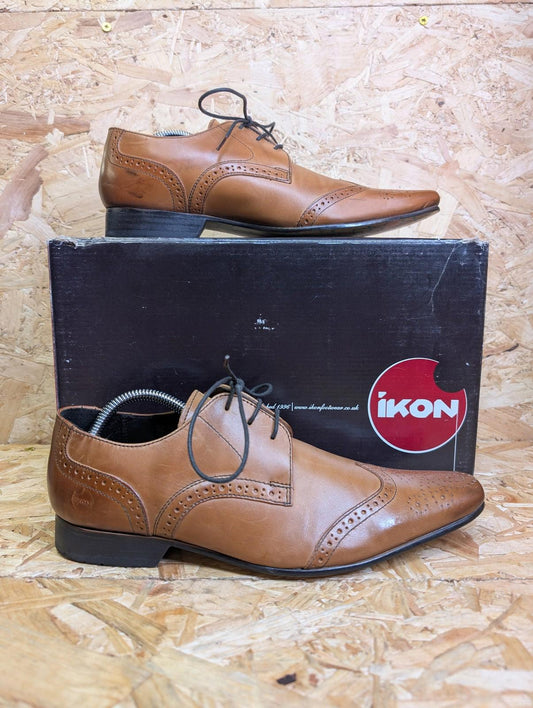 Ikon Shoes UK 6 Men Lace Up Spencer Wing Brogue Smart Shoes Leather Brown