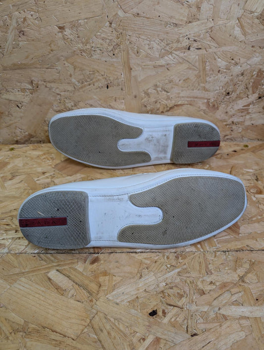 Prada White Leather Loafers Driving Shoes Made Italy Slip On 9 UK 43 EU