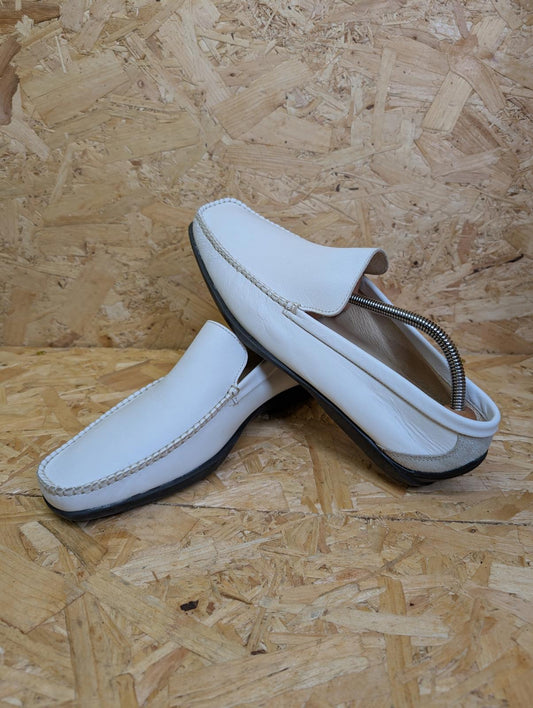 Budberchic by Miss Chelis Shoes 9 UK 43 EU White Leather Loafers Driving Slip
