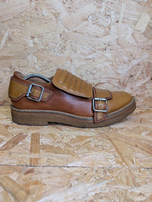 Dries van Noten Buckle Shoes UK 9 EU 43 Tan Brown Leather Gum Sole Made In Italy