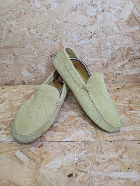 Tods Yellow Suede Gommino Mens 9 UK 43 EU Driving Shoes Slip On Leather Boxed