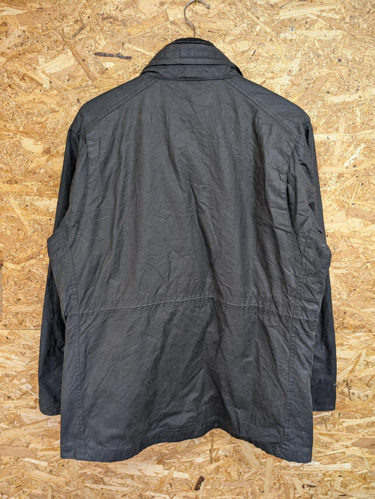 Barbour Whitby Wax Jacket Medium Men Parka Coat Black Hooded Lined Waterproof