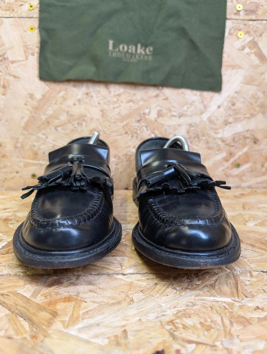 Loake Brighton Black Shoes UK 6 E EU 39 Leather Buckle Loafers Slip-on Boxed