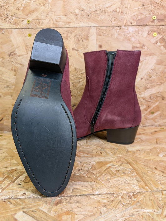 DP James Cadogan Boots Size 6 UK 40 EU Burgundy Suede Cuban Heel Zip Up Side
