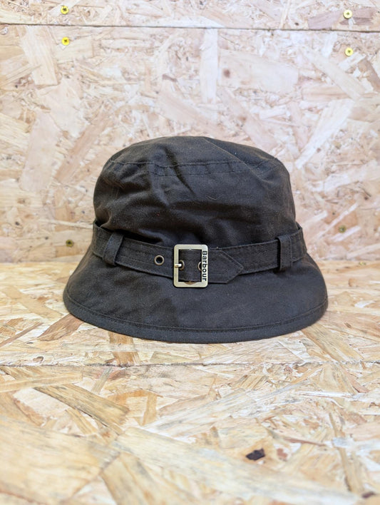 Barbour Casual Wax Bucket Hat Medium Khaki Green Cotton Check Lined