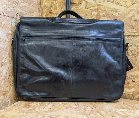 Hidesign Quality Leather Black 15.5" Messenger Bag Medium Briefcase Satchel Book