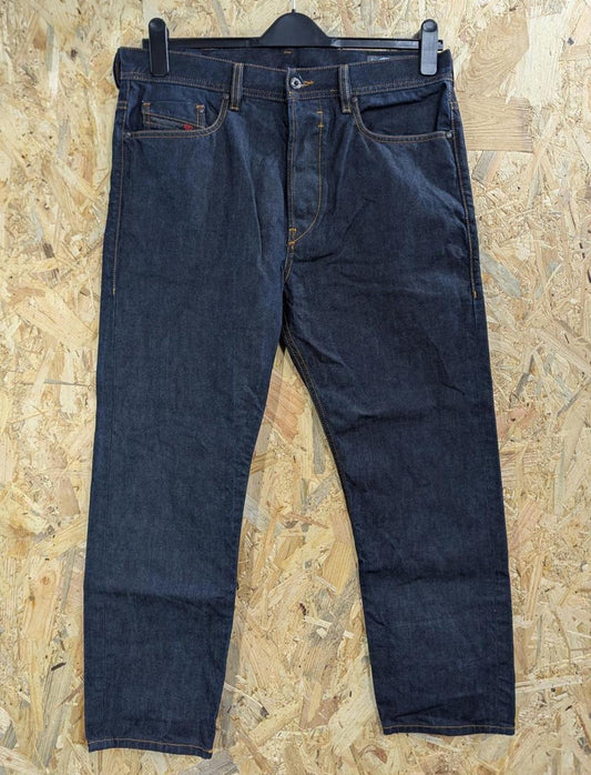 Diesel Rhial-R Jeans W32 L32 Men Raw Rigid Navy Blue Denim Slim Carrot Fit R8E50