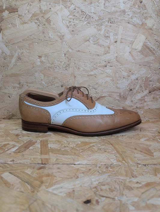 Mr Tredders Brogue Mens UK 11 EU 45 Vintage Leather Tan White Shoes