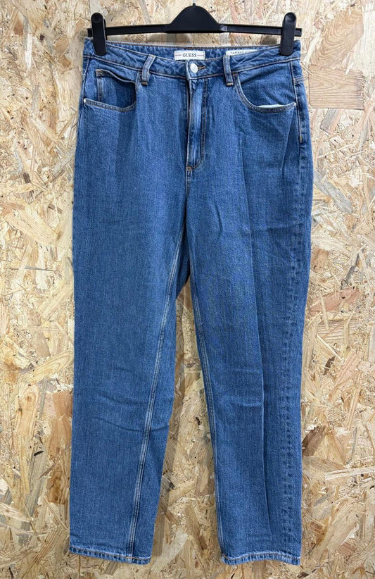 Guess Tapered High Mom Blue Jeans Size 10 W30 L30 Women Stonewash Boyfriend Fit