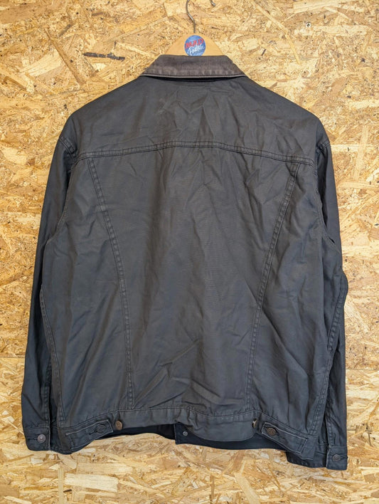 Levis Waxed Trucker Jacket XL Men Lined Black Grey Plaid Check Detroit Canvas