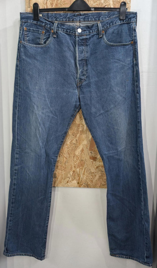 Levis 501 Blue Jeans W32 L34 Men Big E Premium Straight Leg Denim Blue Mid Wash