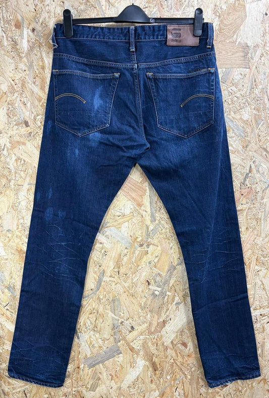 G-Star 3301 Tapered Jeans W34 L32 Navy Blue Dark Denim Button Fly