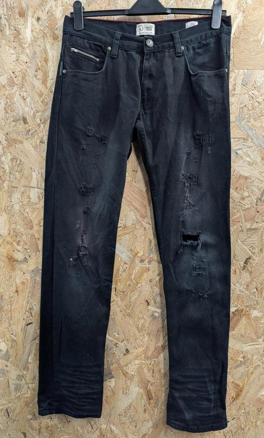 Armani J93 Black Jeans W33 L34 Men Distressed Denim Zip Fly Slim Straight Leg