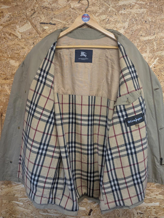Burberry Beige Mac Coat XL 44 Men Nova Check Lined Button Pocket 90s Vintage