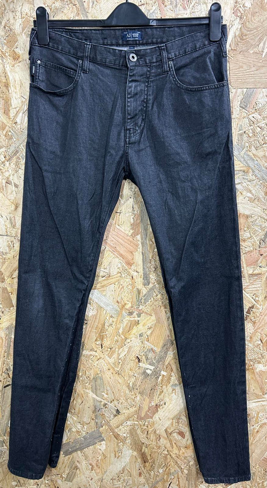 Armani J45 Slim Jeans W32 L32 Men Black Soft Stretch Denim Straight Leg Zip Fly