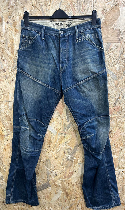 G-Star Elwood 3D Loose Jeans W32 L32 Men Buckle Back Cinch Blue Vintage Y2K