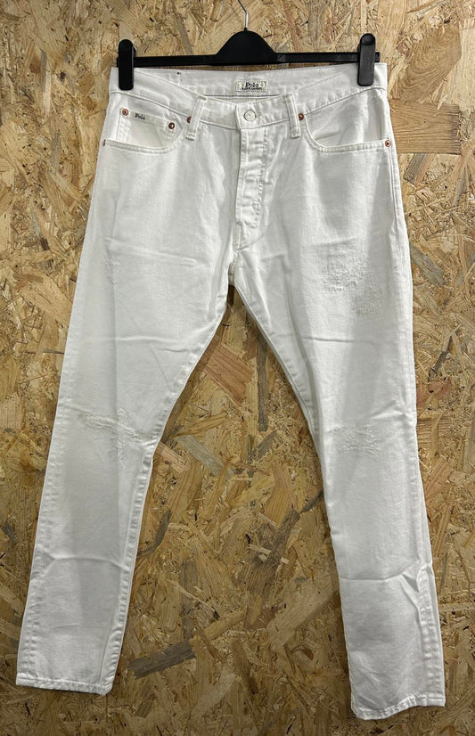 Polo Ralph Lauren White Jeans W32 L32 Men Distressed Slim Leg Button Fly