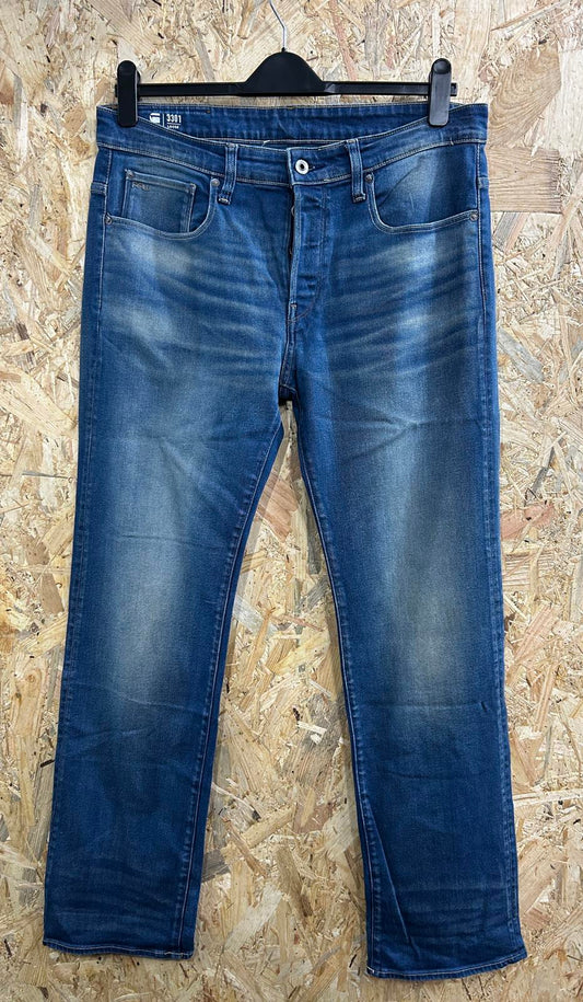 G-Star 3301 Loose Fit Jeans W33 L32 Men Mid Blue Straight Leg Button Fly