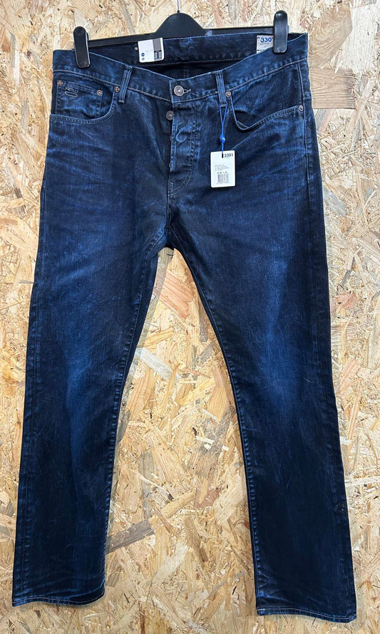 G-Star 3301 Slim Jeans W38 L32 Navy Blue Denim Straight Leg Button Fly NWT