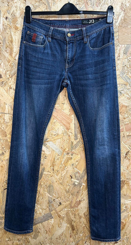Armani J13 Slim Jeans W30 L33 Men Navy Blue Denim Straight Leg Zip Exchange 1991