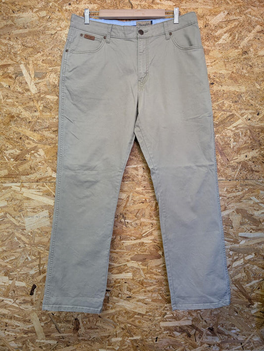 Wrangler Texas Chino Jeans W36 L30 Men Straight Fit Beige Khaki Stretch Zip Fly