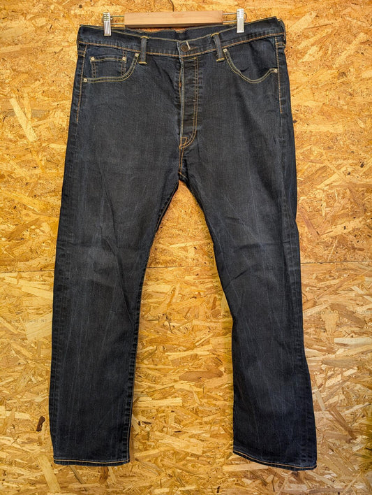 Levis 501 Jeans W38 L32 Men Navy Blue Stretch Denim Straight Leg Classic Button