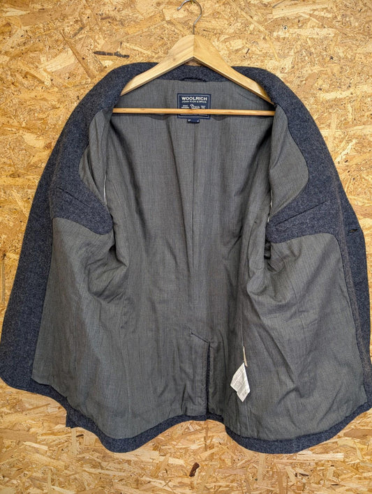 Woolrich Tweed Blazer Large Men Wool Blue 2 Button Cotton Lined Navy Elbow Patch