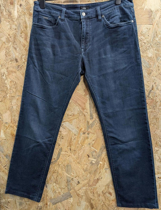 Hugo Boss Maine Jeans W36 L30 Men Regular Fit Navy Blue Denim Straight Leg Zip