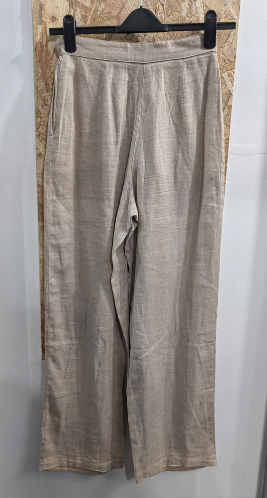Armani Trousers Womens Size 8 W26 L31 Wide-Leg Baggy Beige Pleated Linen Oatmeal