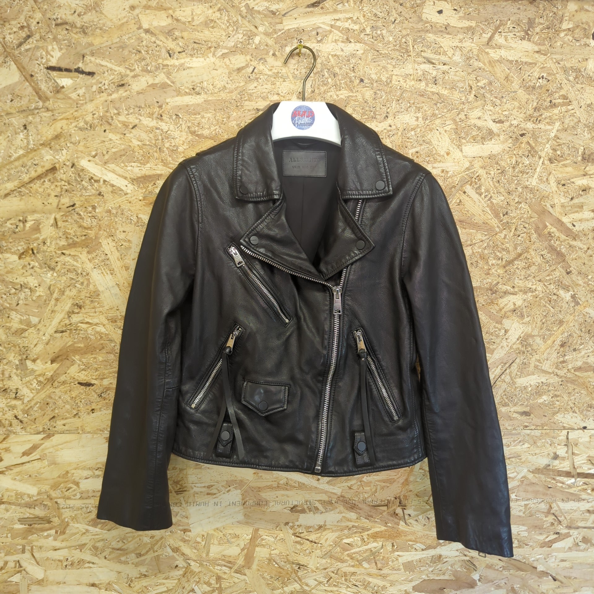 All Saints Griffen Black Leather Biker Jacket Motorbike Size UK 12 Medium