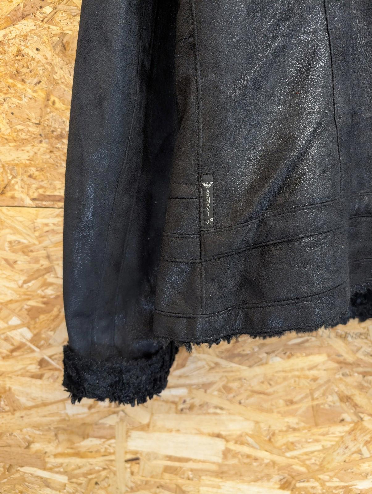 Armani Jeans Jacket Womens Size 12 Faux Fur Fleece Lined Suede Black BeigeY2K