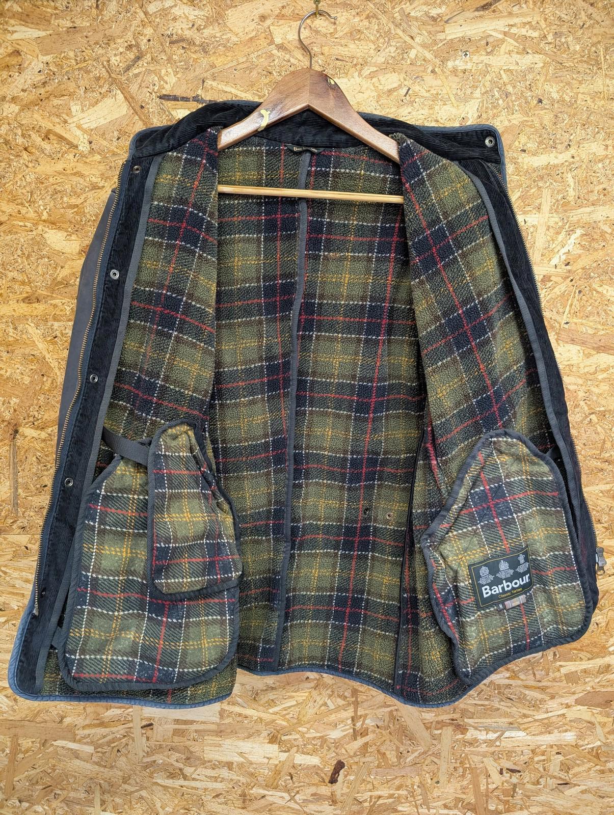 Barbour Edderton Jacket Medium Men Quilted Wax Dry Tartan Fleece Blue Coat