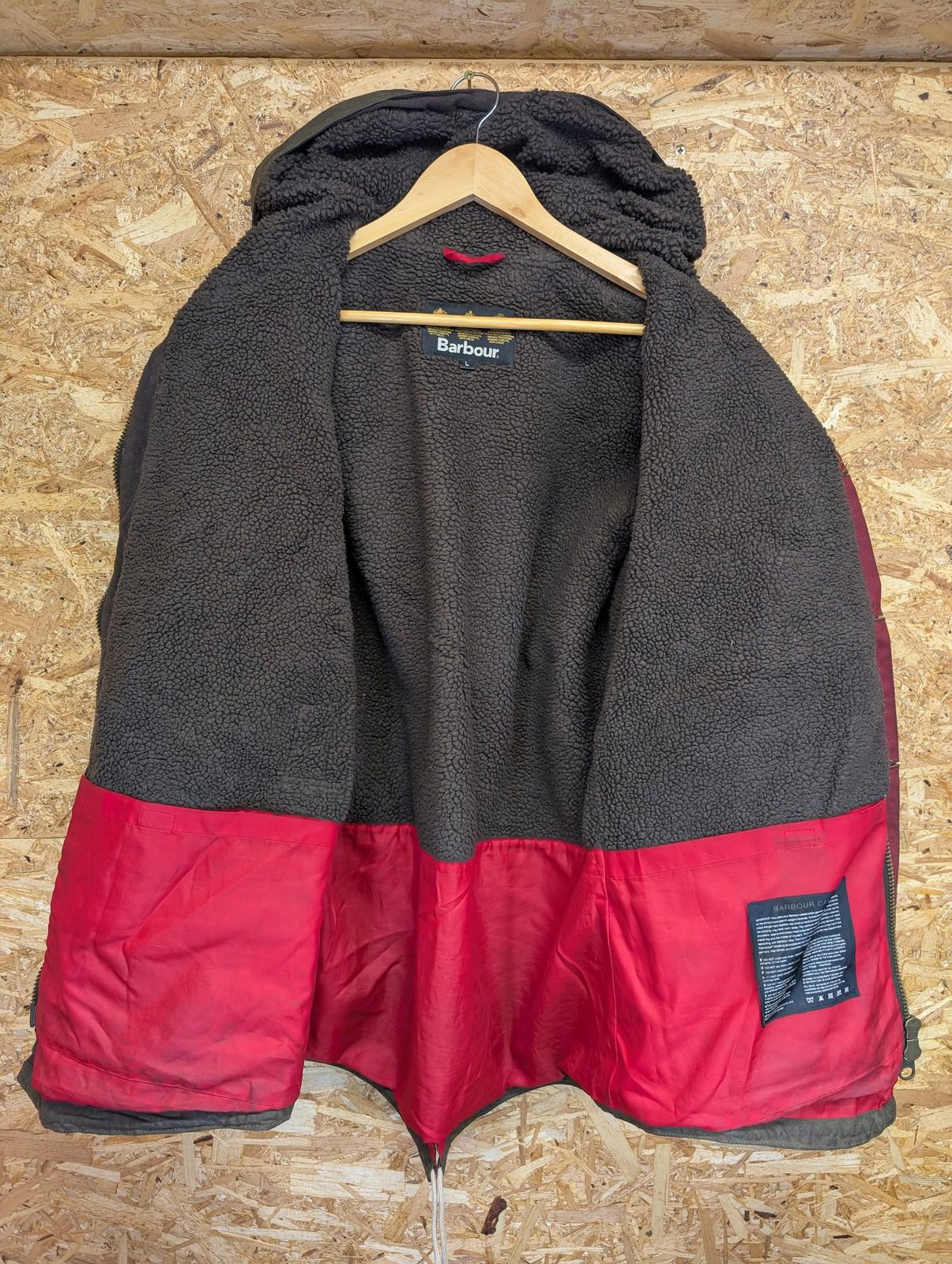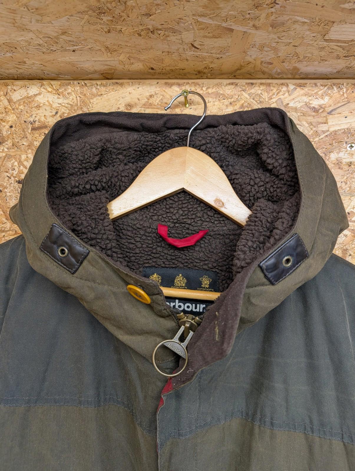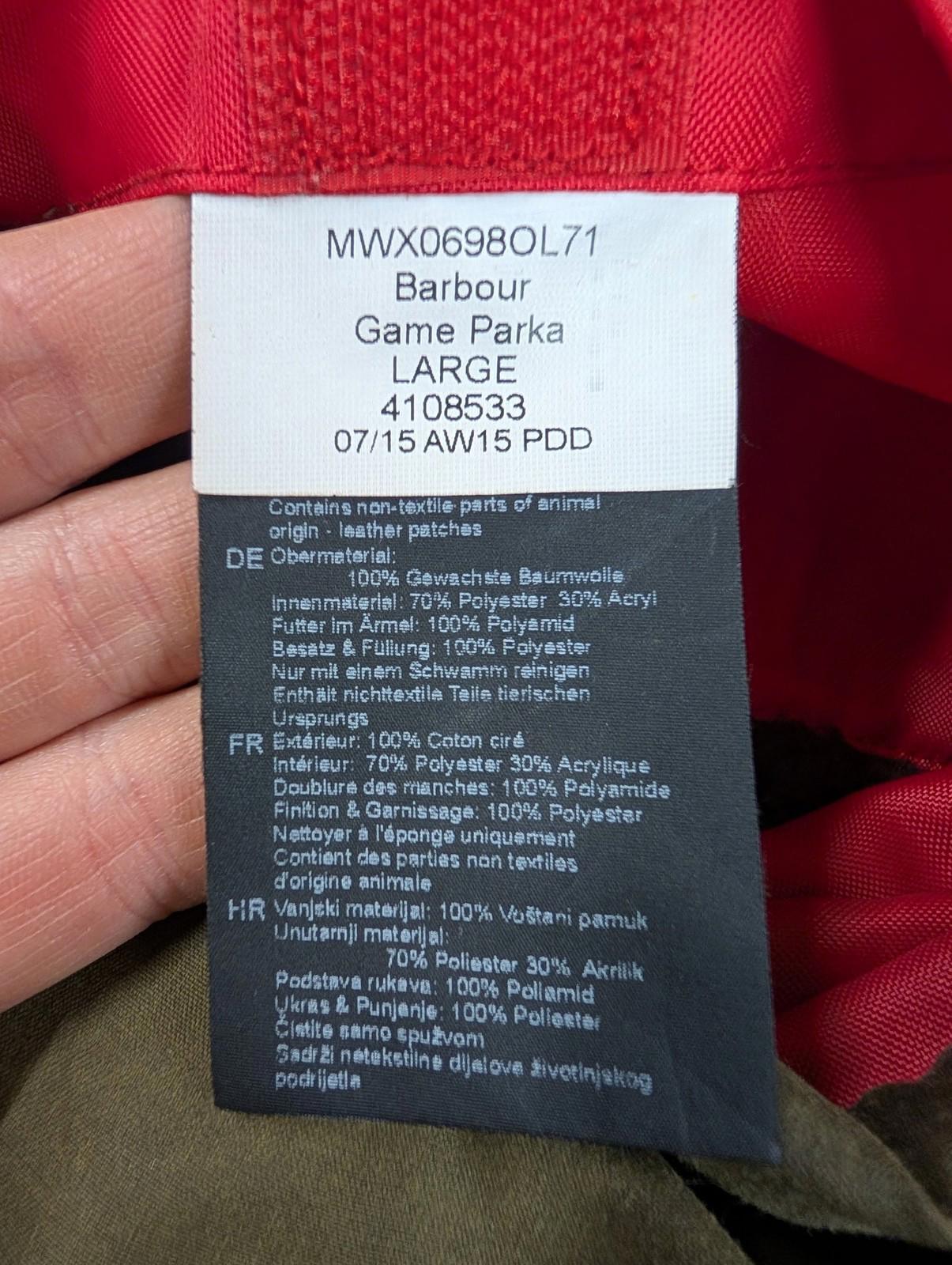 Barbour Game Parka Jacket Large Men Wax Cotton Olive Green Fleece Lined Coat