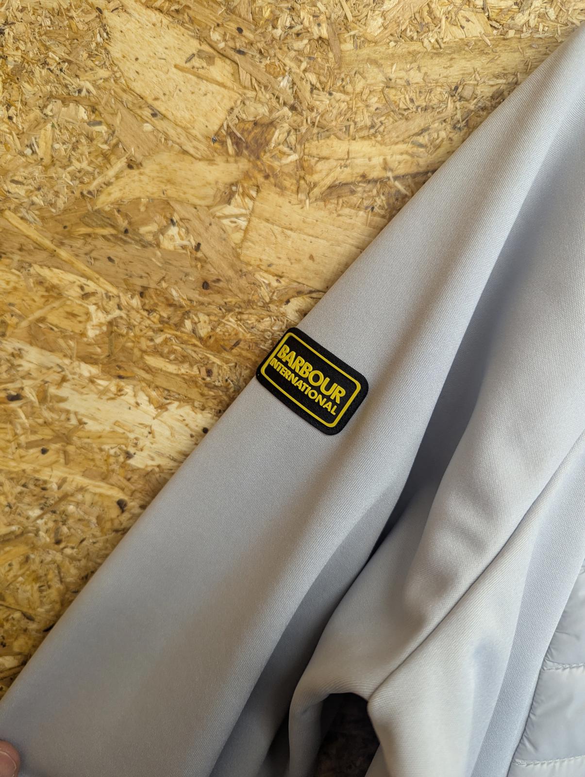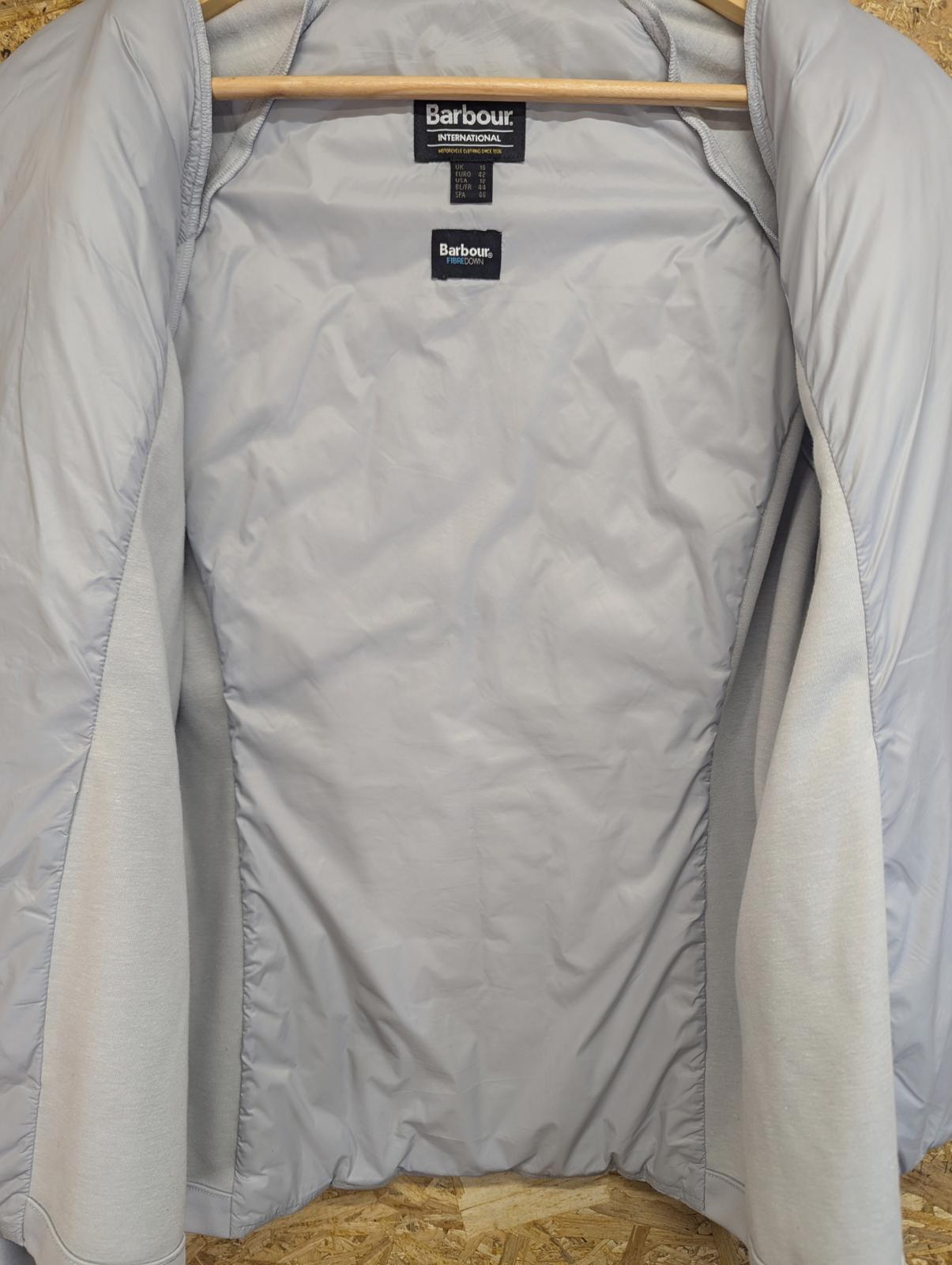 Barbour International Fibre-Down Jacket UK 16 Women Zip Pockets Grey Drive Sweat