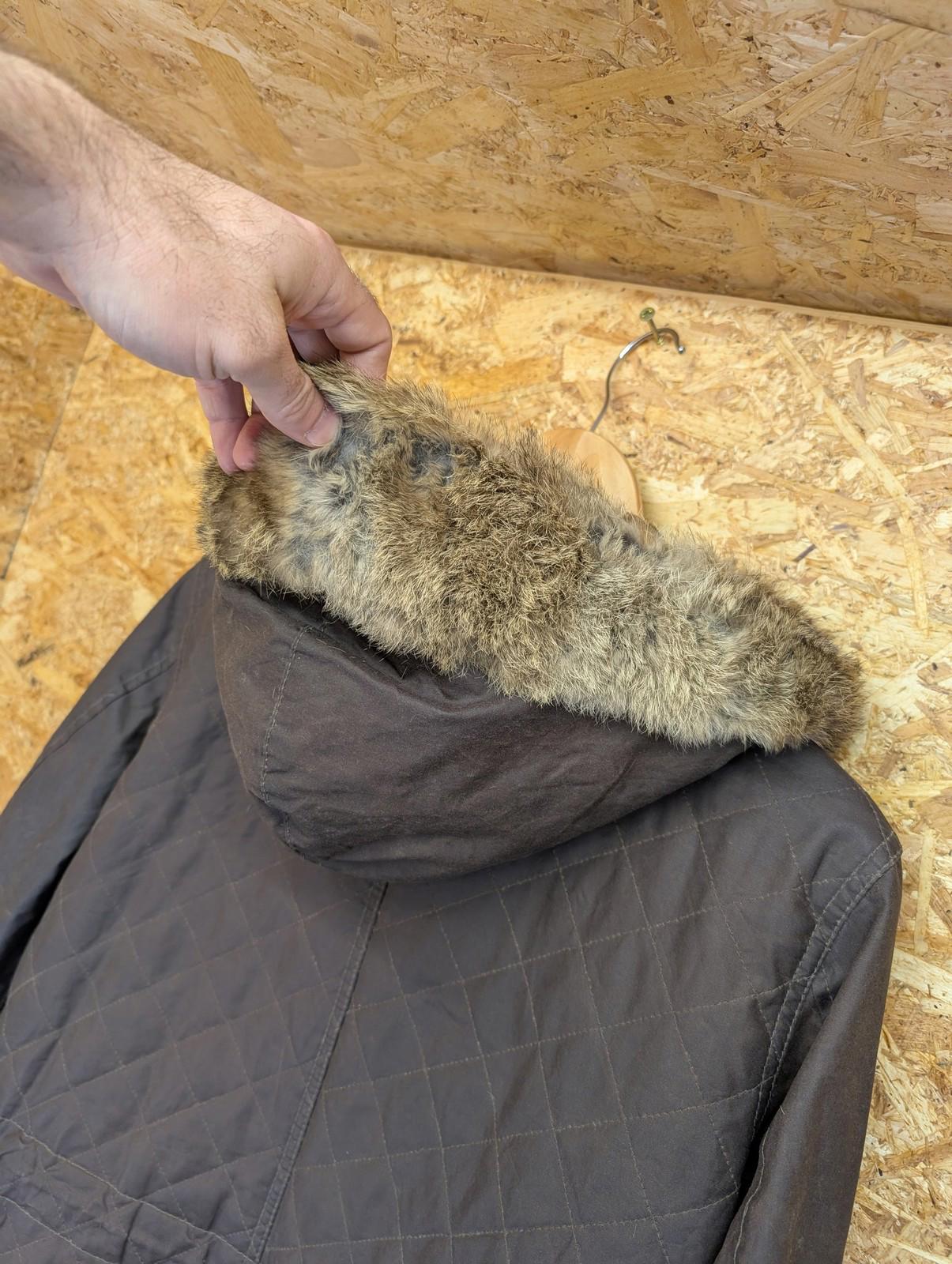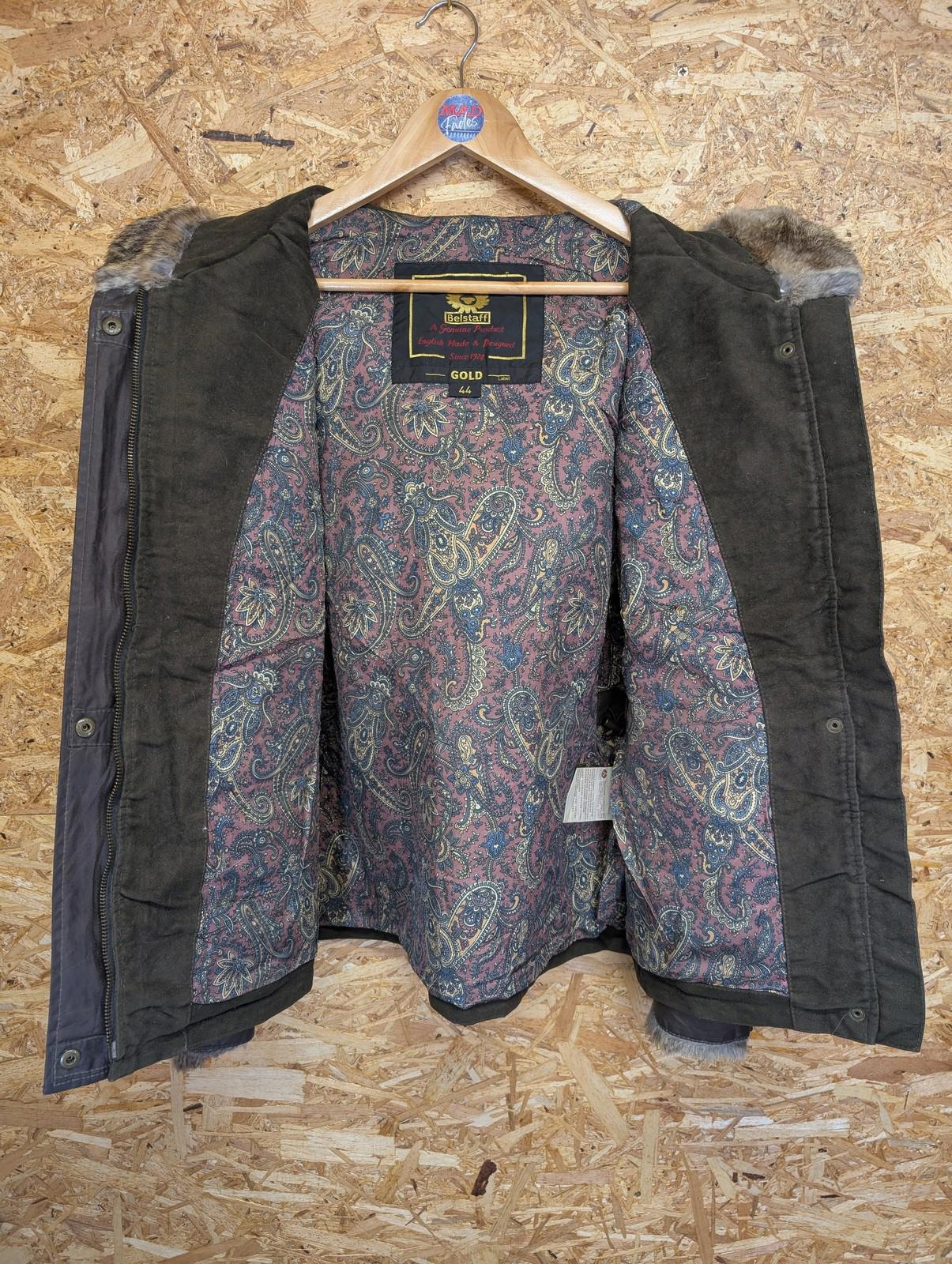 Belstaff Gold wax Jacket Size 12 Women 44 Quilted Brown Fur Trim Hood Biker