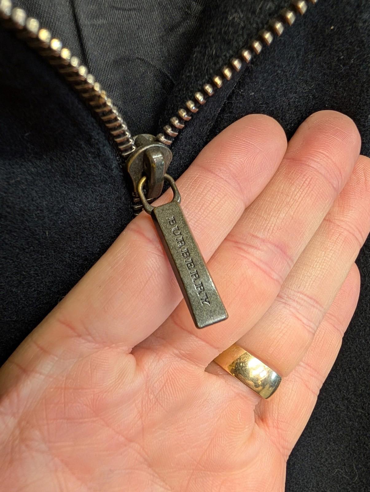 Burberry Wool Blend Coat Large 42 Men Vintage 90s Zip Black Winter Nova Jacket