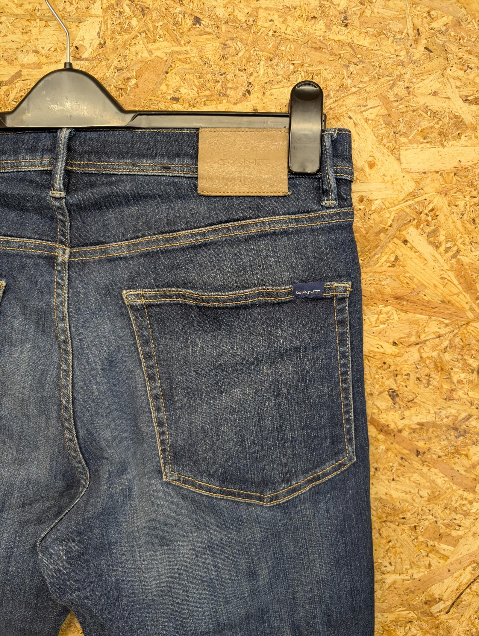 Gant Jeans W35 L32 Men Maxen Extra Slim Fit Denim Mid Blue Straight Leg Zip Fly