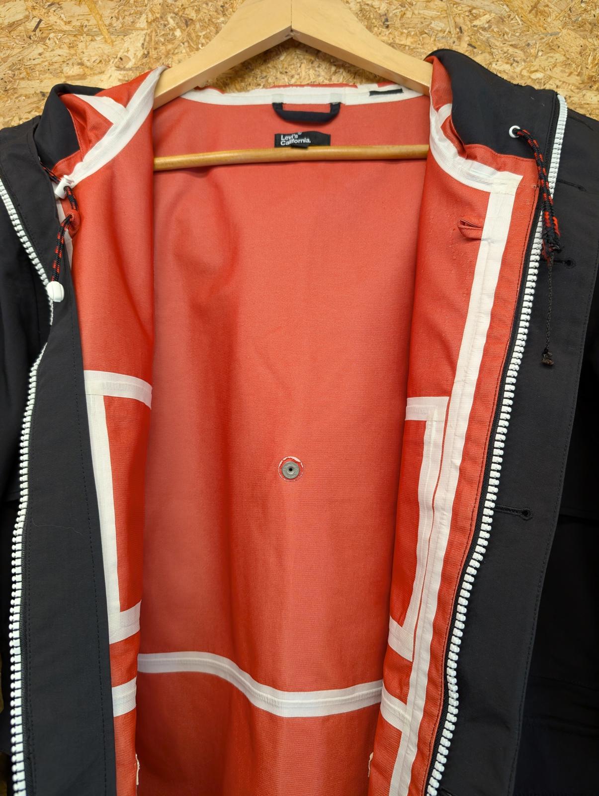 Levis California Jacket Medium Men Hooded Black Waterproof Anorak Raincoat Parka