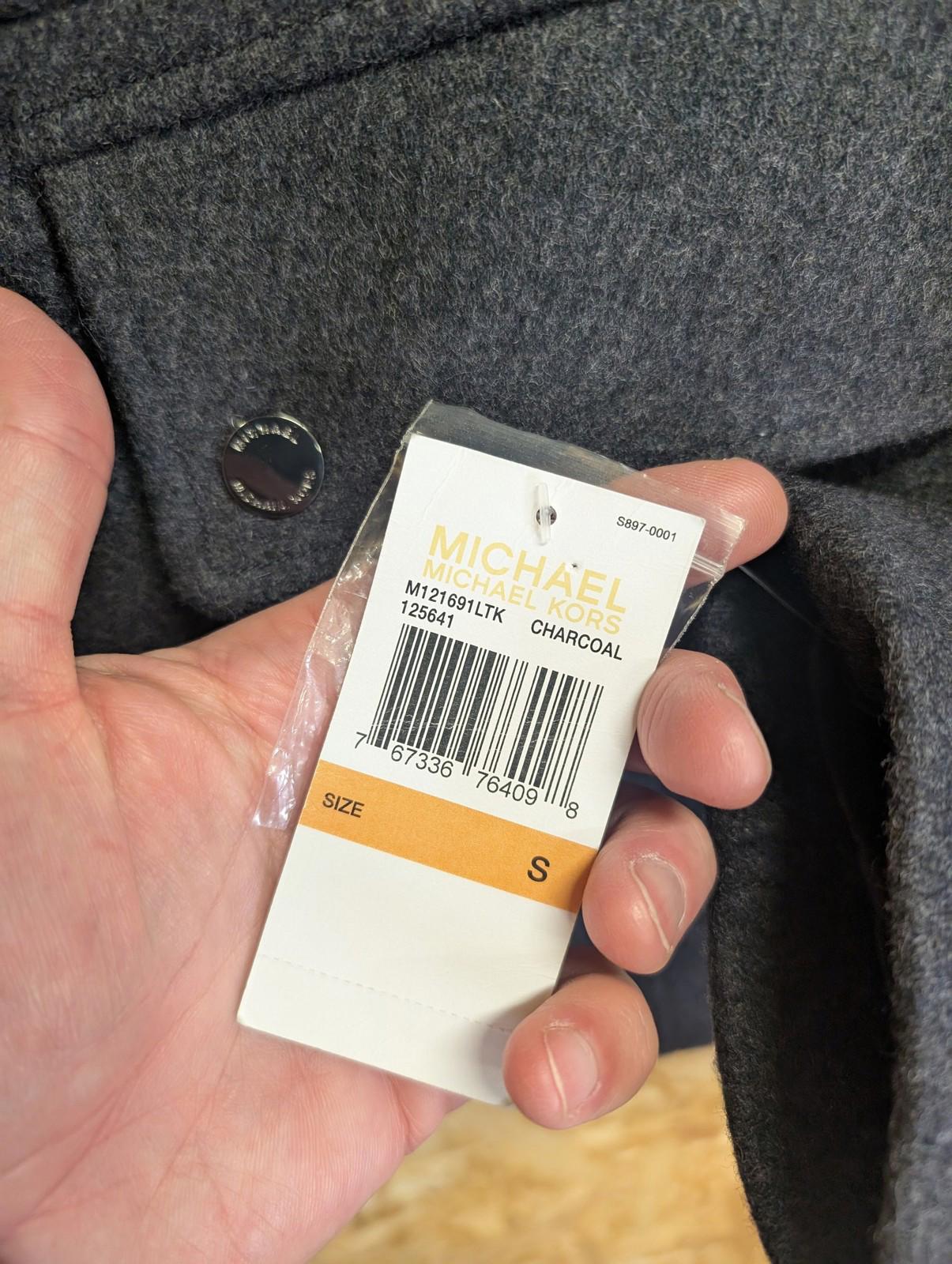 Michael Kors Peacoat Jacket Small Women Faux Leather Trim Charcoal Wool Blend