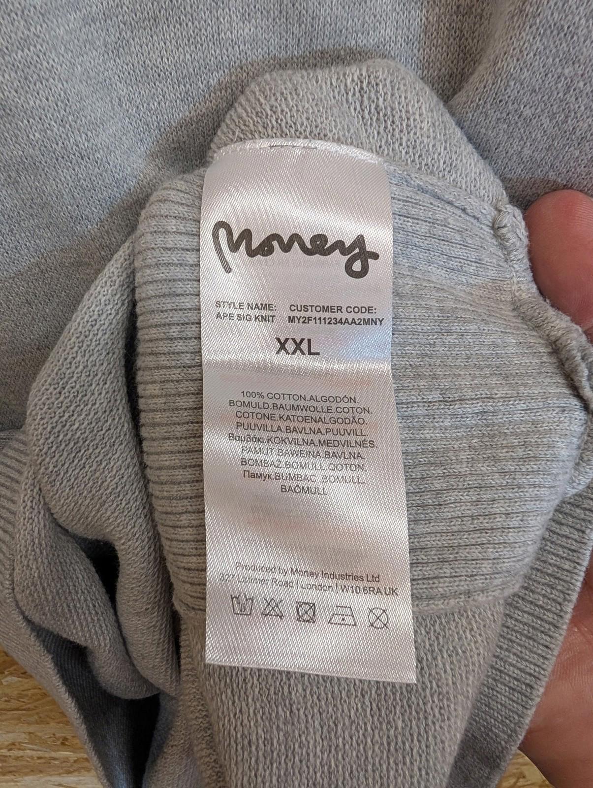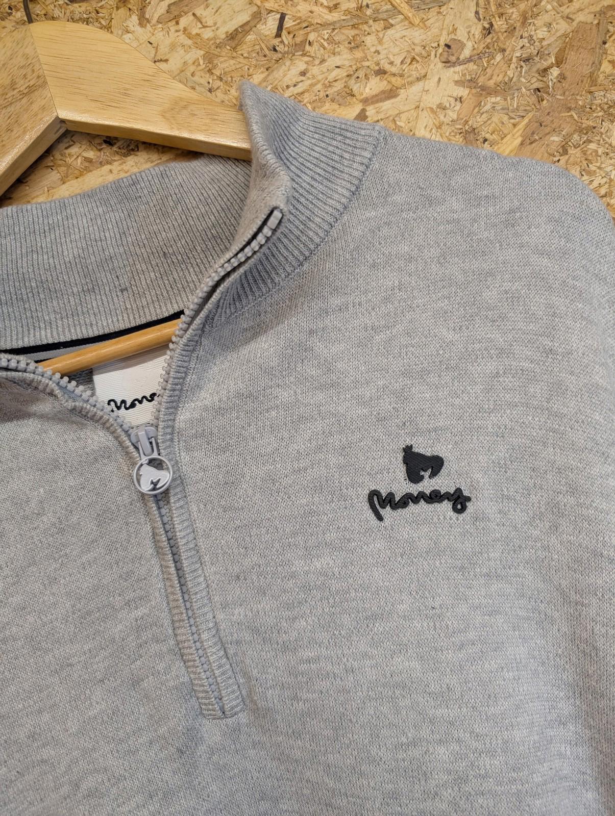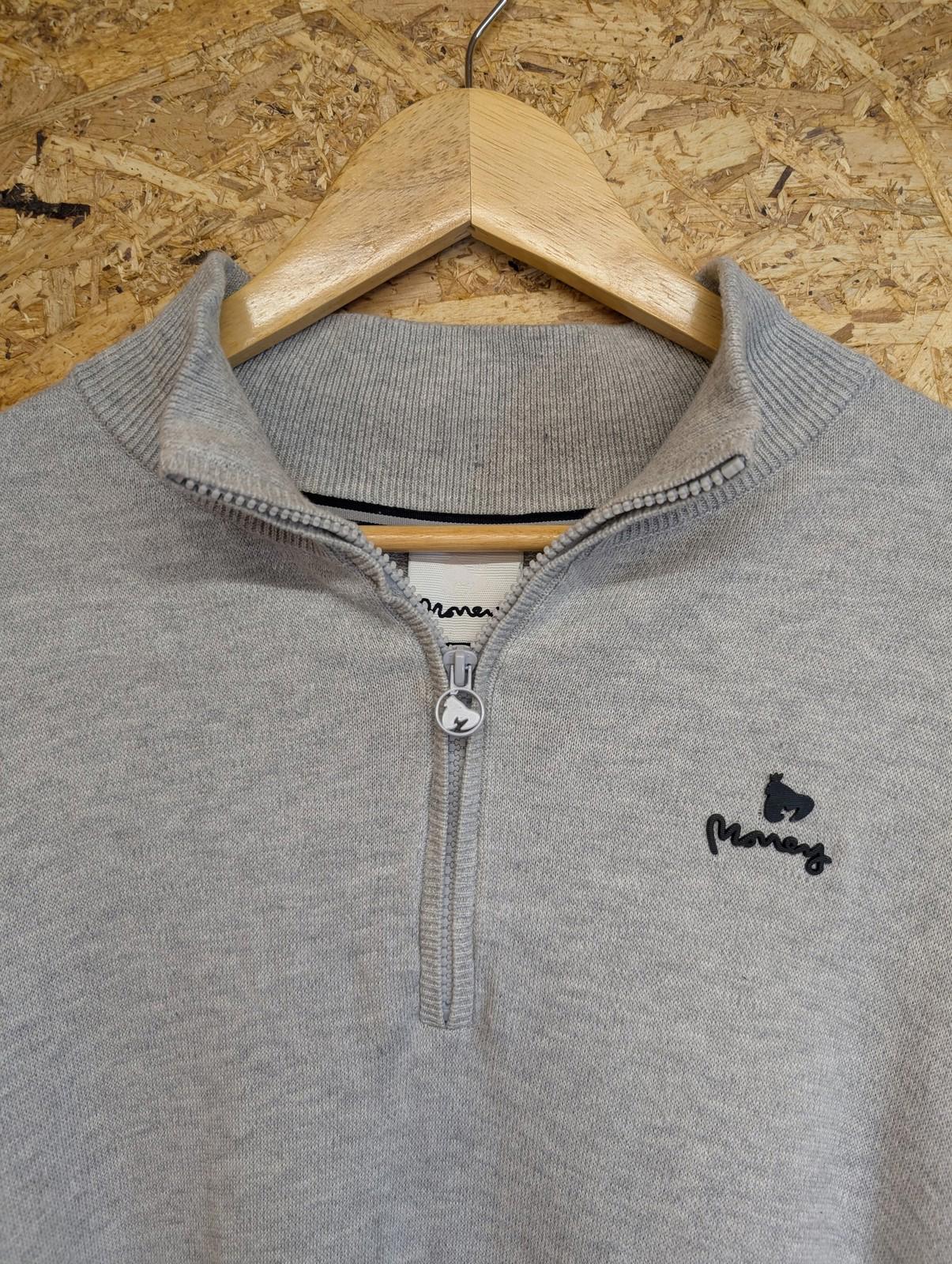 Money Clothing Ape Knit Jumper Mens XXL 1/4 Zip Cotton Grey Casual Collared