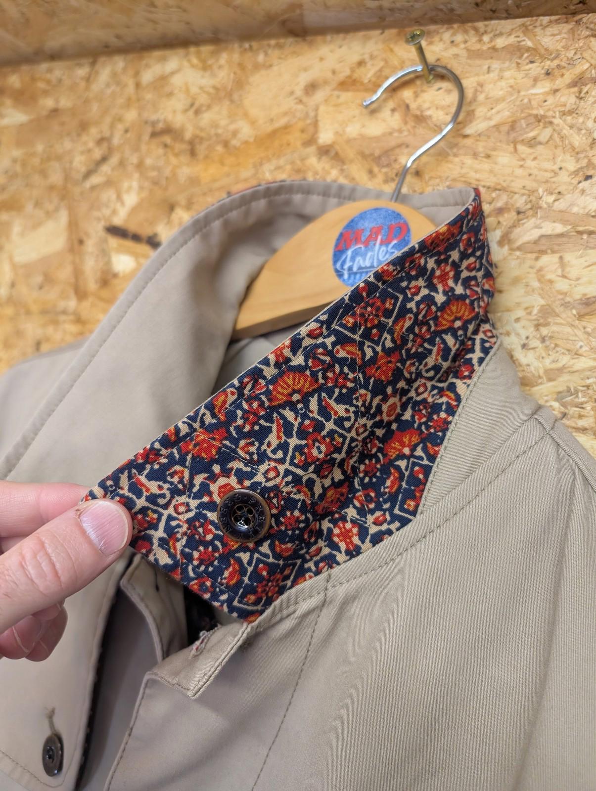 Pretty Green Mac Trench Coat Medium Men Beige Patterned Collar Overcoat