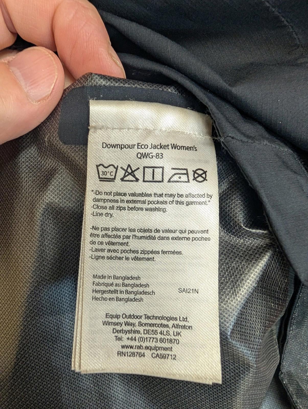Rab Downpour Eco Jacket Medium Women Waterproof Windbreaker Outdoor Coat Black