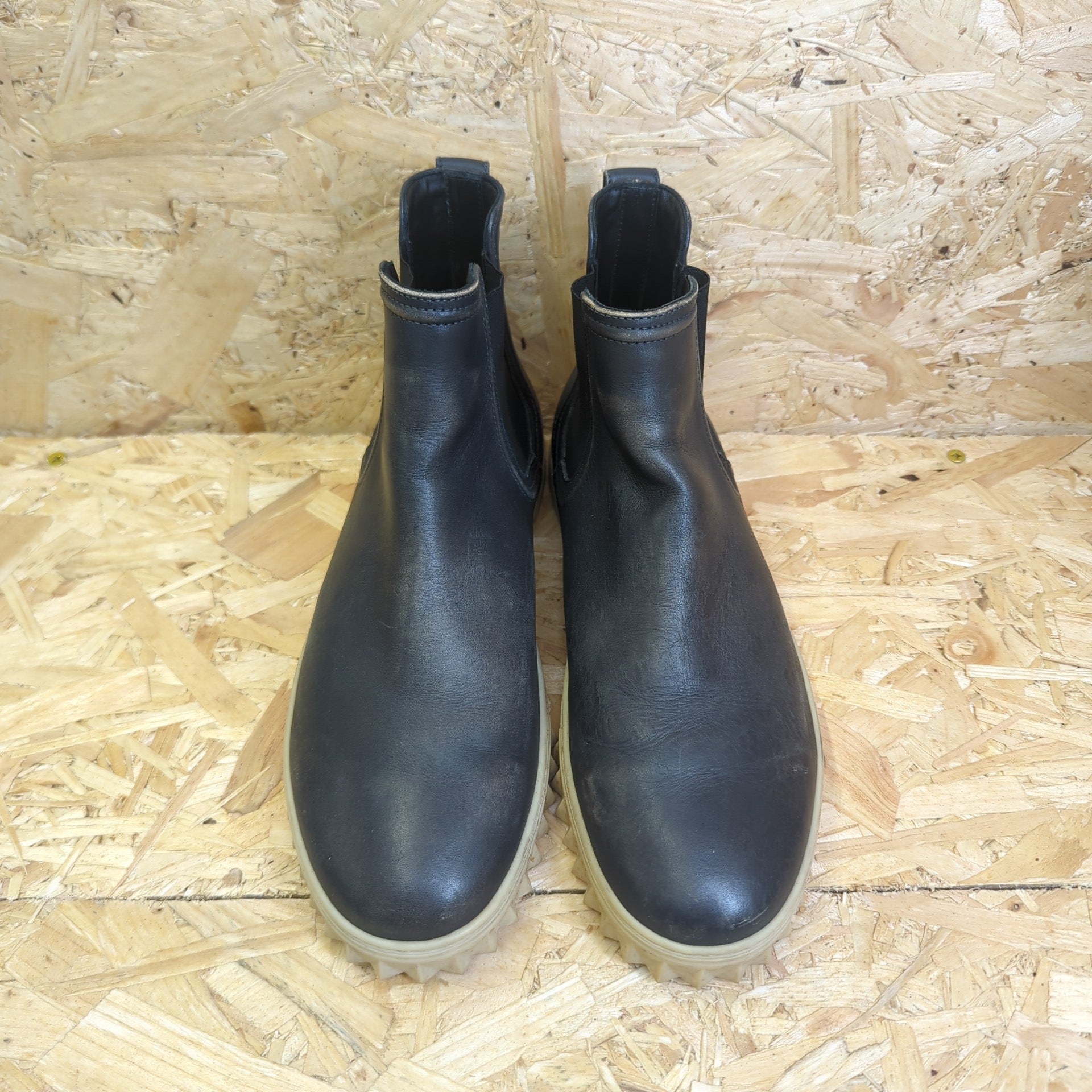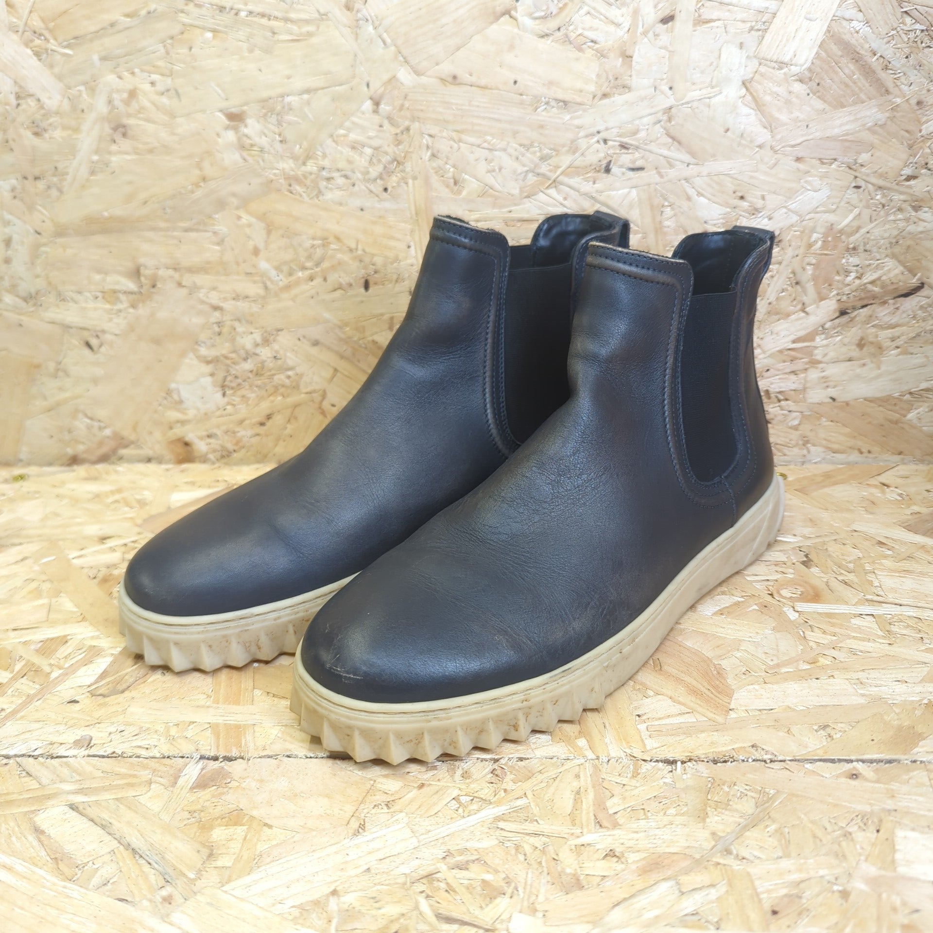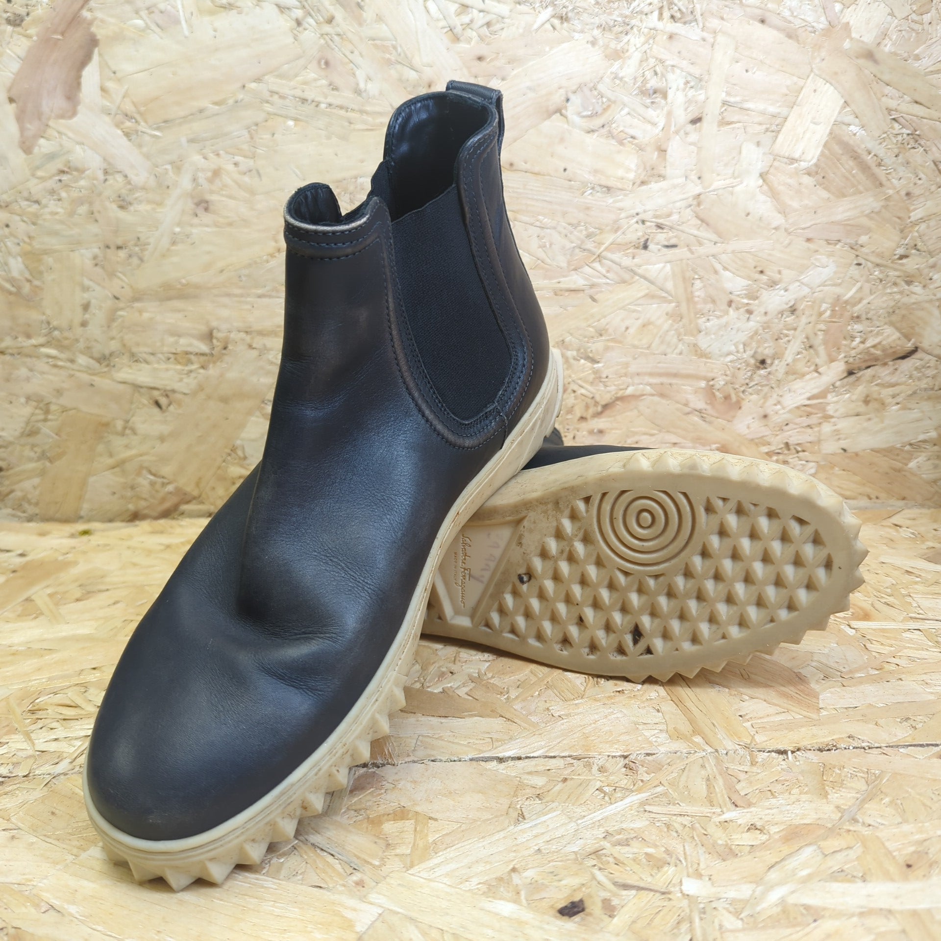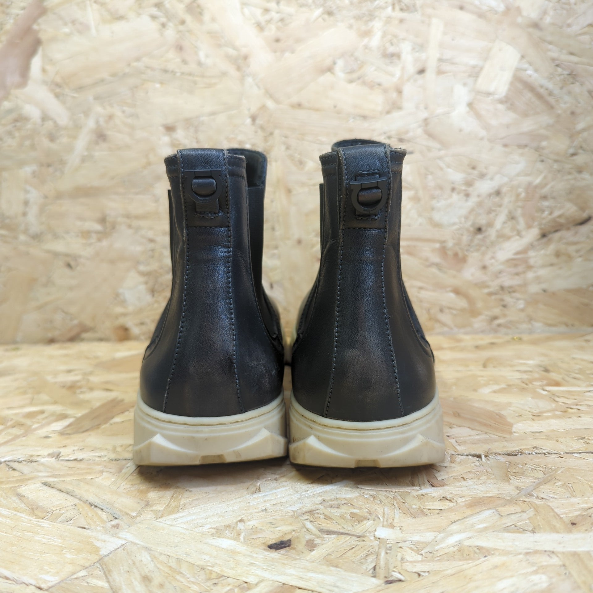 Salvatore Ferragamo Talos Lead Grey Calf Leather Black Chelsea Sneakers 8 UK 42