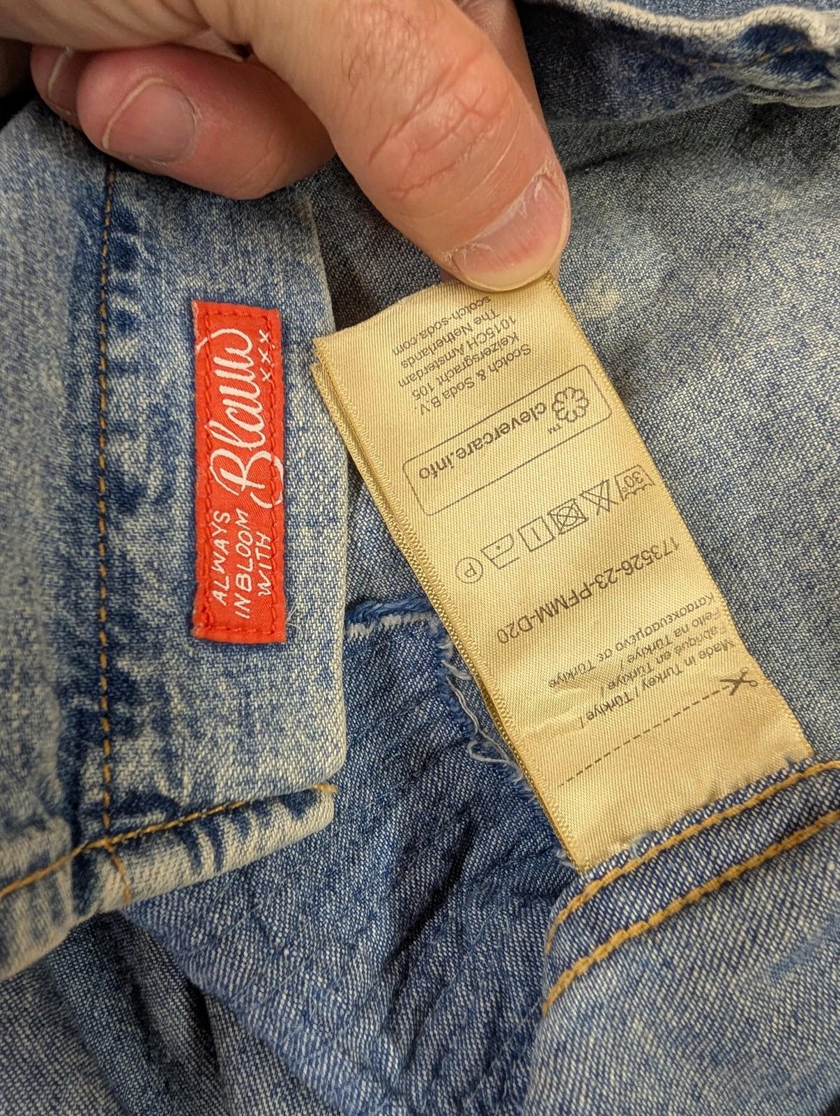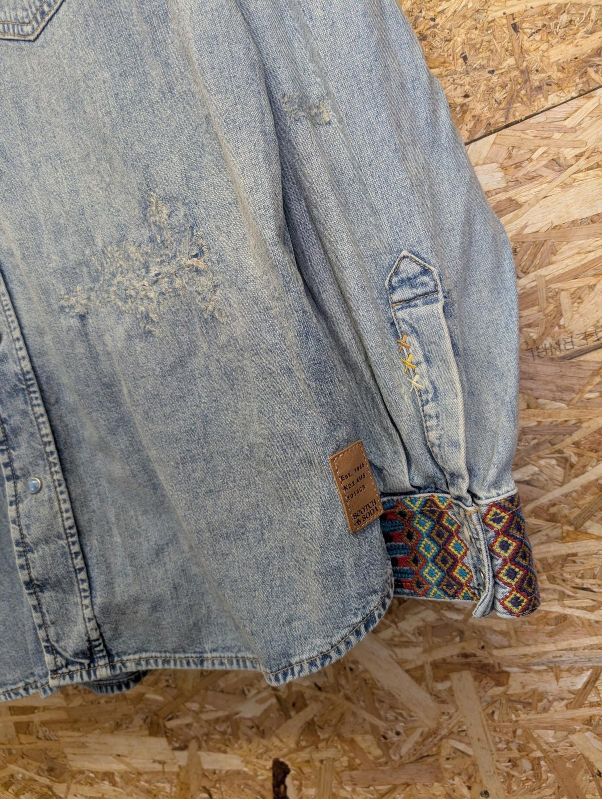 Scotch & Soda Denim Shirt Large Men Pearl Snap Aztec Embroidered Cuffs Blue