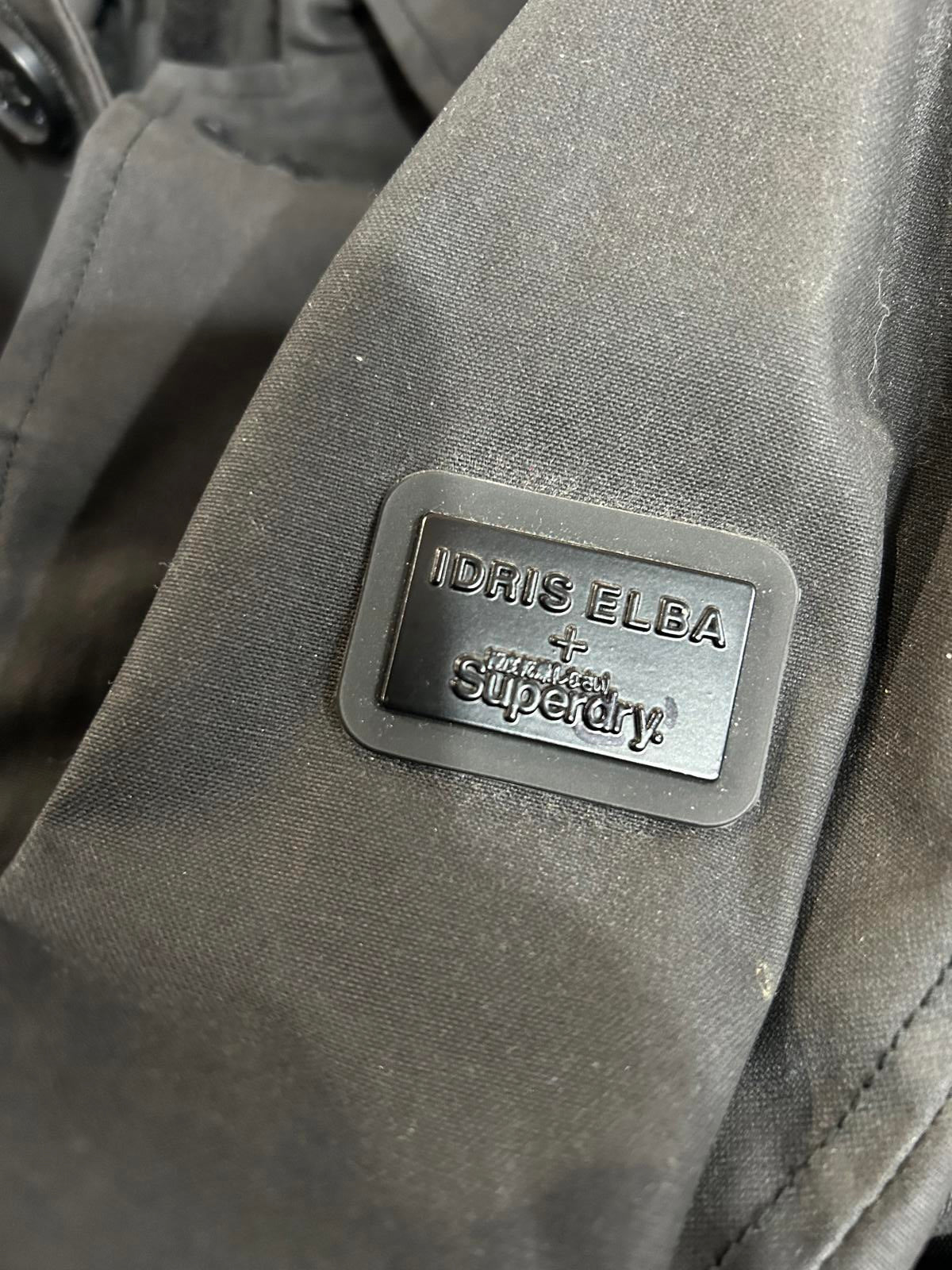 Superdry x Idris Elba Mens Size Small The Director Wax Coat Lined Hooded Black