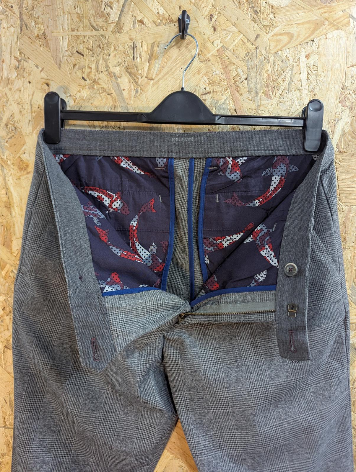 Ted Baker Chino Trousers W34 L30 Formal Work Grey Check Straight Leg Pants Zip