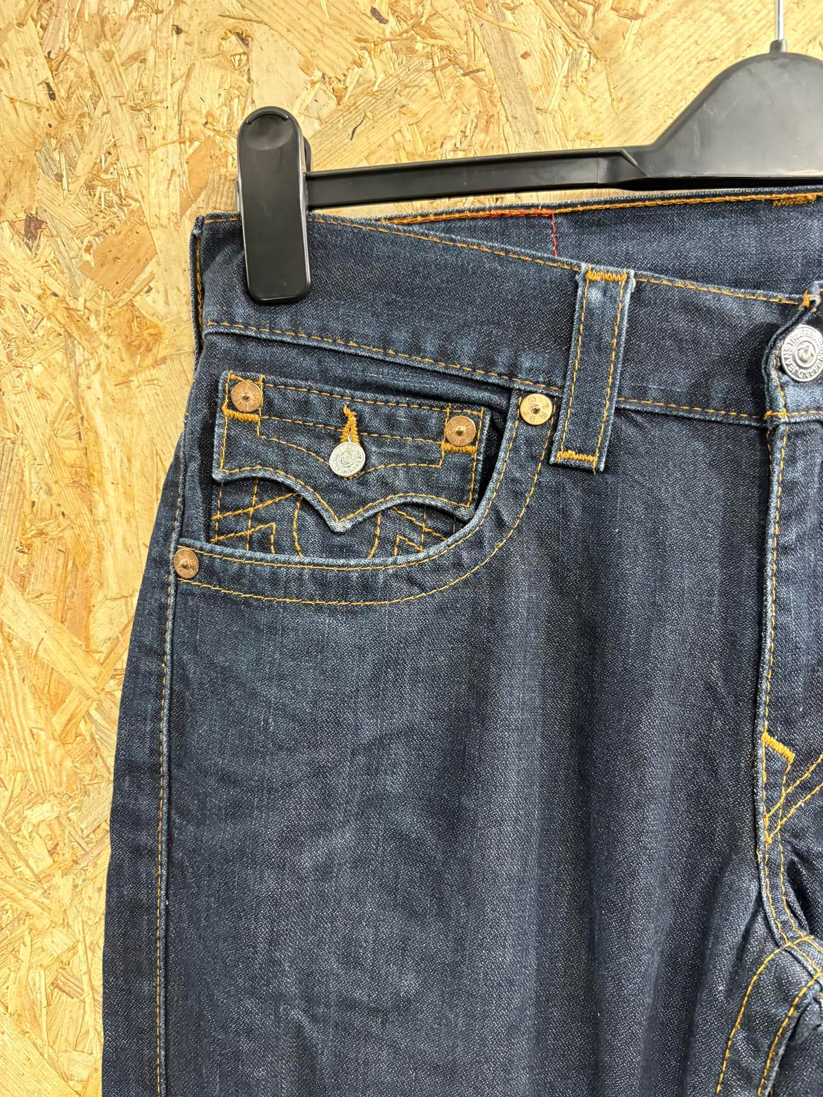 True Religion Jeans W31 L34 Men Straight Leg Navy Blue Denim Zip Fly